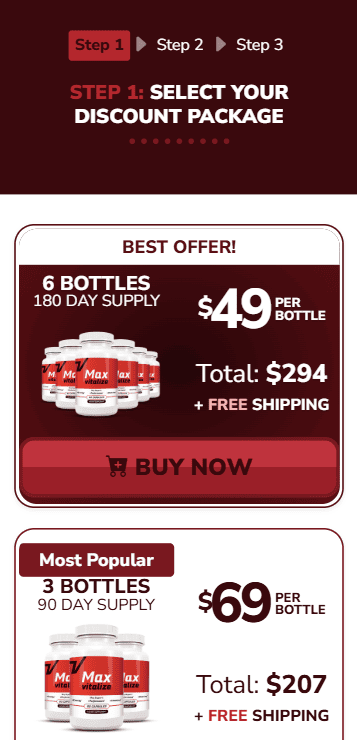 The current promotion features Max Vitalize at its lowest price ever. Every order placed today includes Free Shipping, ensuring that the price you see is the price you pay. Our fulfillment team prioritizes fast delivery to get Max Vitalize to your doorstep as quickly as possible.